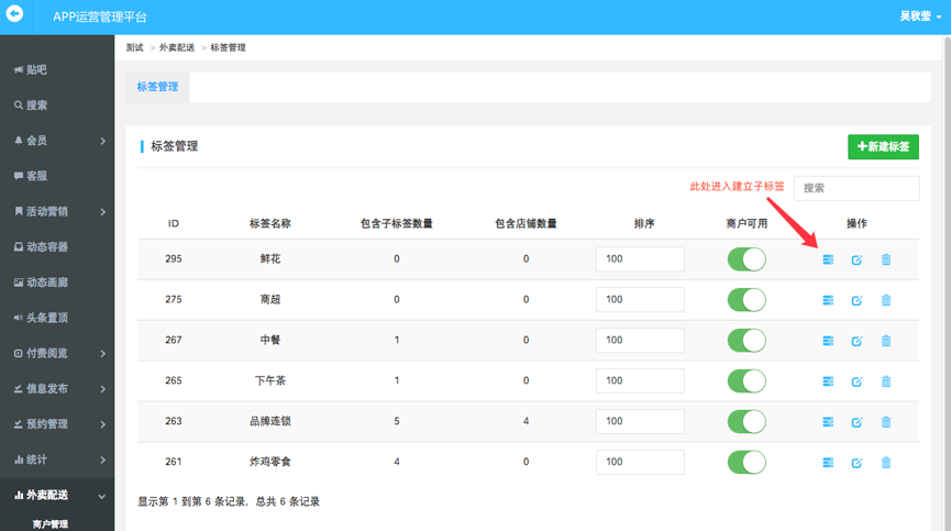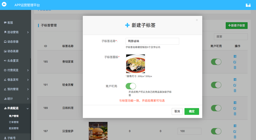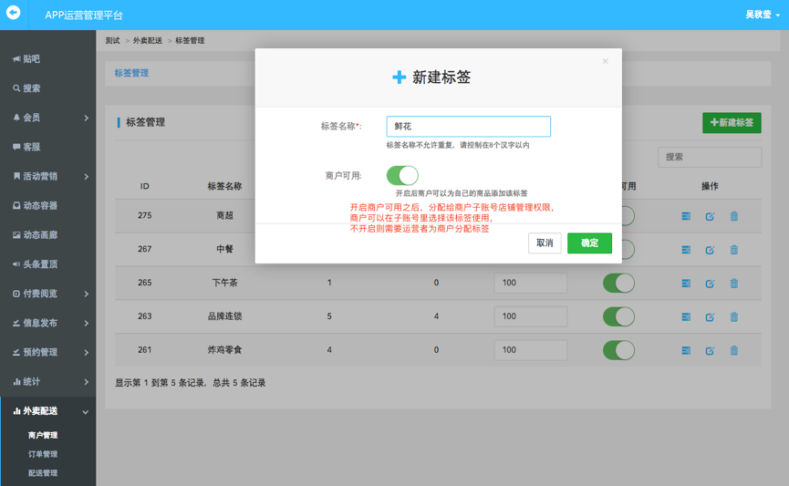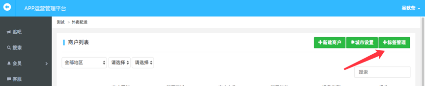 2.  進入運營管理平臺-同城配送-商戶管理新建立標簽以及商戶信息