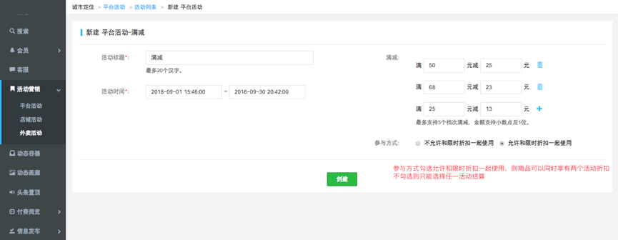 10.2 滿減(一家店鋪只能添加一個滿減活動,不可添加多個):