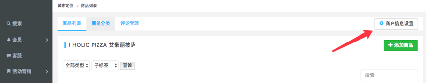 5.   店鋪建立完成之后,進入商戶信息設置完善相關(guān)信息。