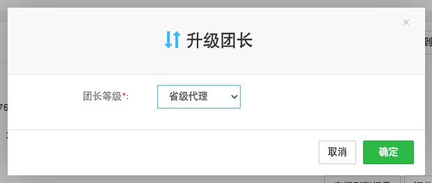3.分銷員管理中,可將用戶設(shè)置為團(tuán)長(zhǎng),可選一個(gè)團(tuán)長(zhǎng)等級(jí)