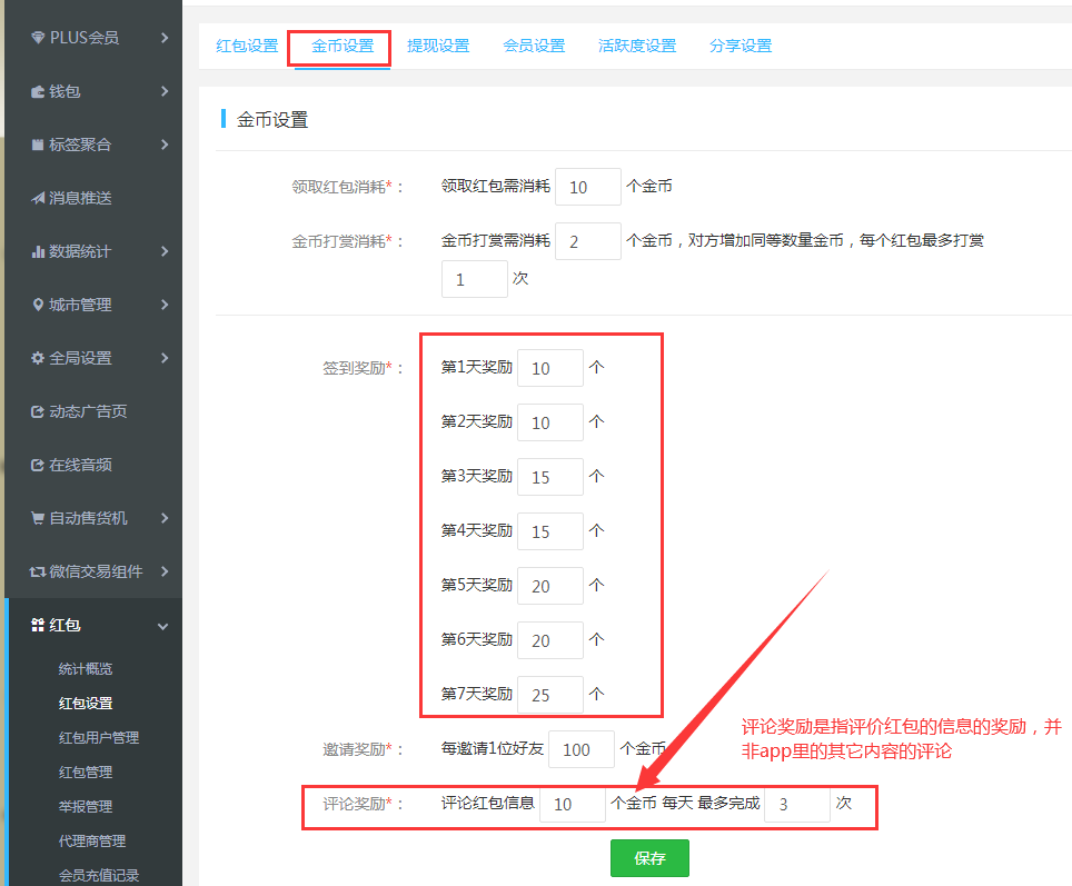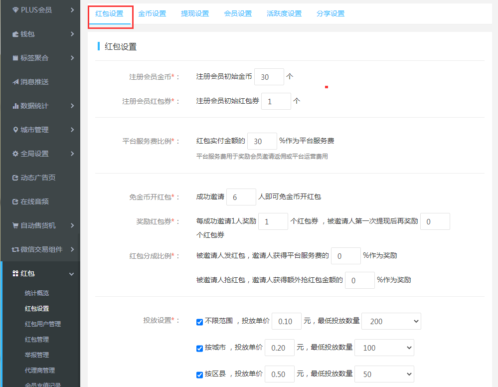 2.紅包設置:紅包基礎設置需要按經(jīng)營需求設置完善