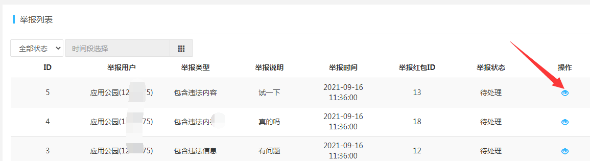 5.舉報管理:用戶可在app里舉報違規(guī)信息,管理員可進行紅包駁回編輯或紅包下架處理