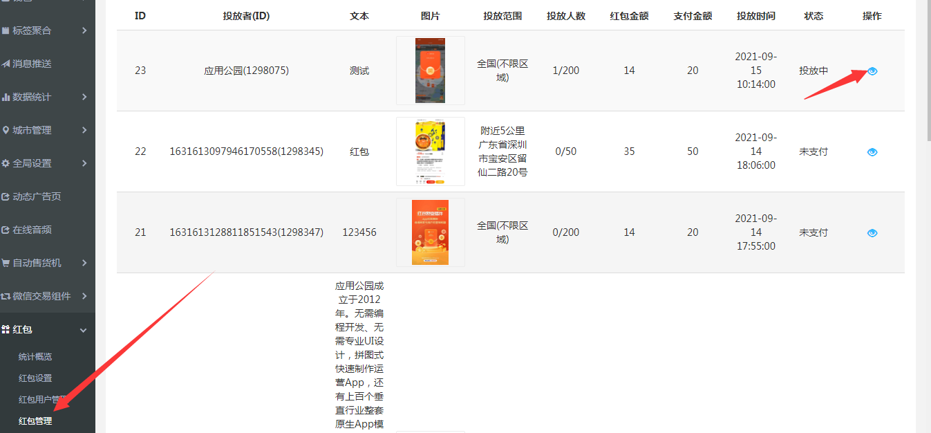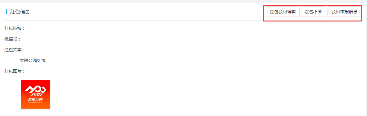 4.紅包管理:用戶發(fā)布的紅包內容,如里有違規(guī)或不符合要求的針對進行下架以及駁回編輯 。