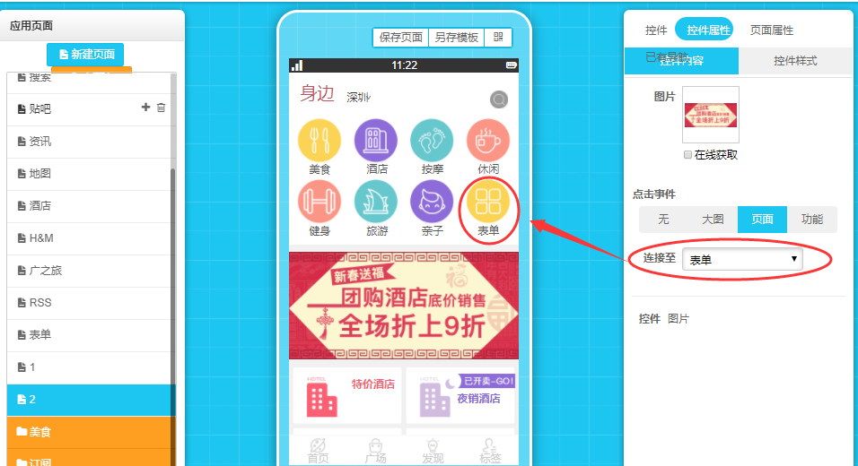 表單設(shè)置好之后保存頁(yè)面,并將其鏈接至相應(yīng)的點(diǎn)擊頁(yè)面,生成發(fā)布到應(yīng)用中使用,就能給用戶使用了。