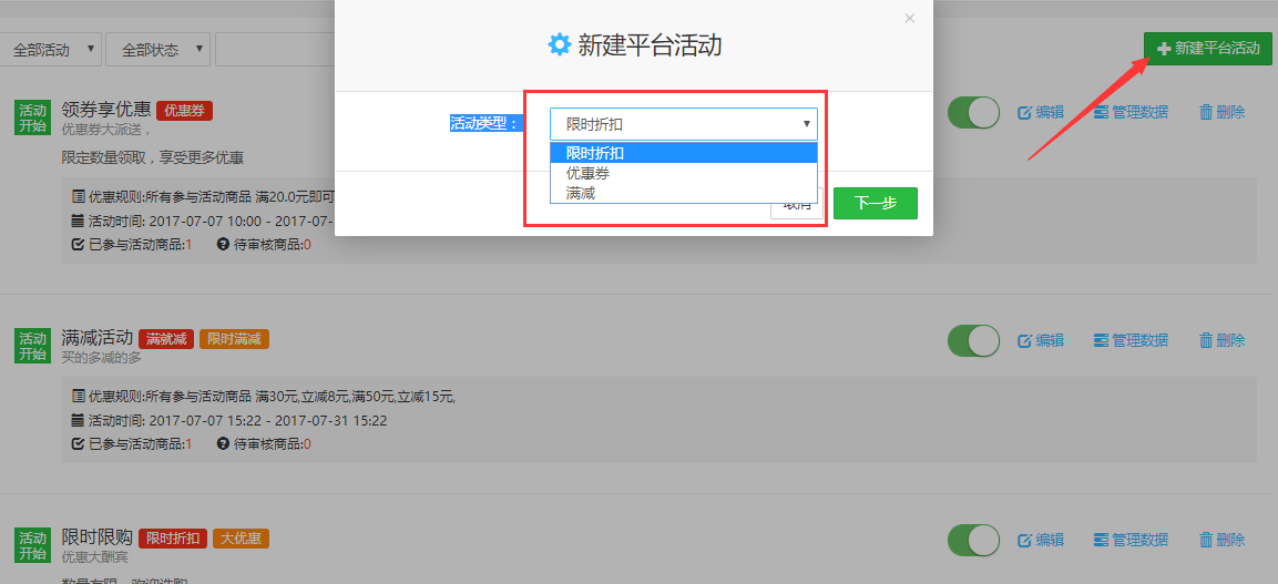 為了更好的優(yōu)化商城盈利模式,促進(jìn)商家產(chǎn)品的銷售,應(yīng)用公園3.0活動營銷系統(tǒng)-平臺活動正式上線。限時(shí)折扣,優(yōu)惠券,滿減等促銷功能一應(yīng)俱全,條件設(shè)置靈活、簡單易用;