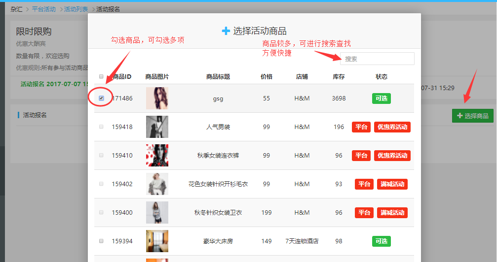 f.支持自營店鋪及第三方入駐店鋪報(bào)名參加該活動