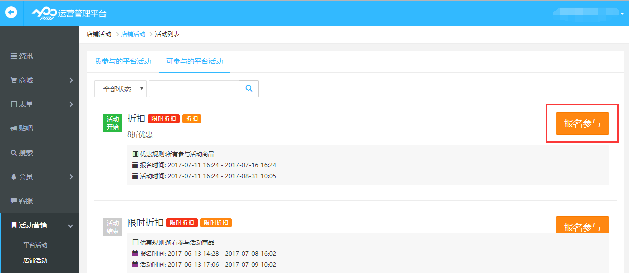 4.本店鋪可參與平臺(tái)活動(dòng):