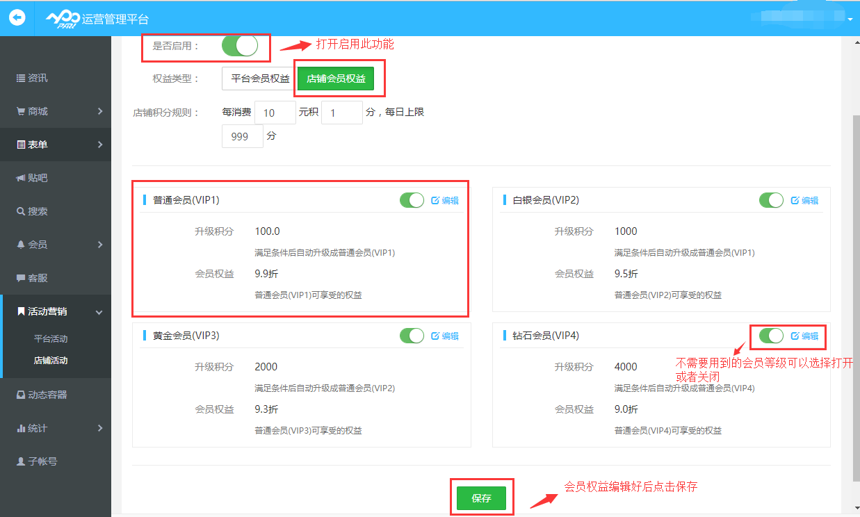 5.店鋪會(huì)員權(quán)益: