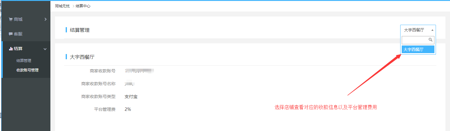 *可以單獨(dú)為每個(gè)店鋪設(shè)置獨(dú)立收款賬號(hào)及平臺(tái)管理費(fèi),平臺(tái)管理費(fèi)按店鋪訂單實(shí)付金額比例結(jié)算(包含貨到付款訂單)