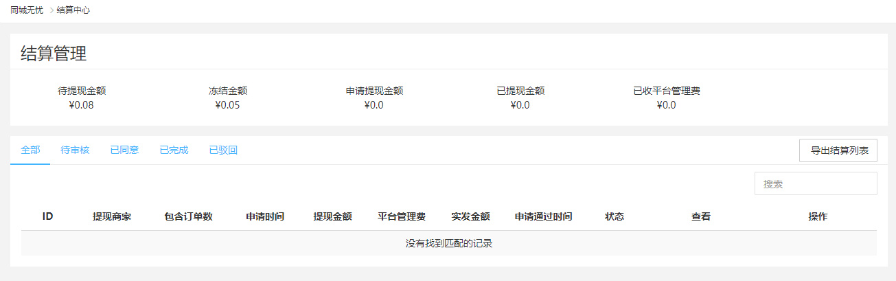 3.結(jié)算管理界面,所有相關(guān)的金額統(tǒng)計(jì)均會(huì)顯示在對(duì)應(yīng)項(xiàng)目里,支持導(dǎo)出訂單結(jié)算列表更加方便數(shù)據(jù)的保存