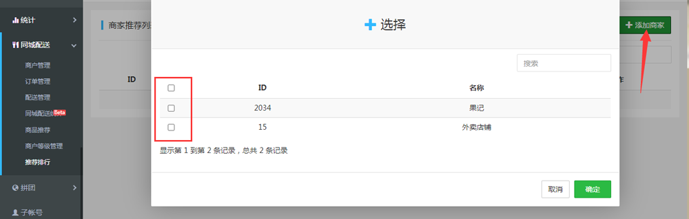 3.點擊頁面右上角添加商家,選擇已有的商家