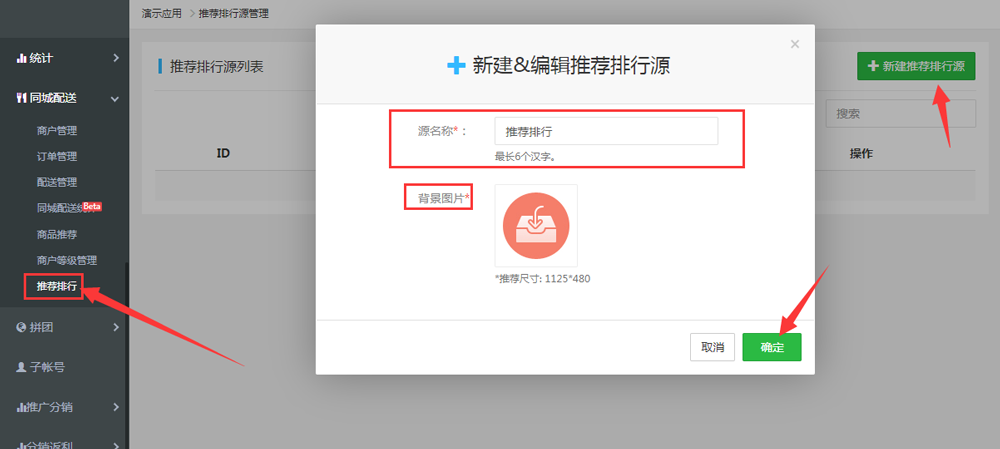 1.打開運營管理后臺同城配送菜單下的:推薦排行-新建推薦排行
