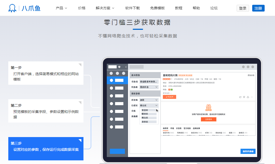 一個工具讓你可以采集網(wǎng)上的數(shù)據(jù),比如想開餐廳不知道周邊到底有多少同行,一鍵采集,數(shù)據(jù)化統(tǒng)計(jì),更加精準(zhǔn)。想找商家的聯(lián)系方式,同樣一鍵采集。上萬個有效電話,用不玩的資源。
