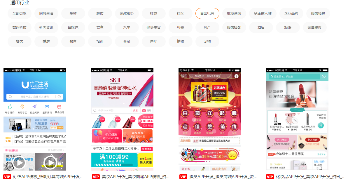 比如常見的電商類App模板,應(yīng)用公園就有生鮮、超市、自營、批發(fā)、企業(yè)品牌、數(shù)碼科技、燈飾、化妝品、酒類、汽車、母嬰、服飾、餐飲、教育、寵物等不同行業(yè)類型的電商App模板。方便你快速制作。這些模板內(nèi)容的功能、內(nèi)容、排版、布局,自己也可以通過平臺二次修改。
