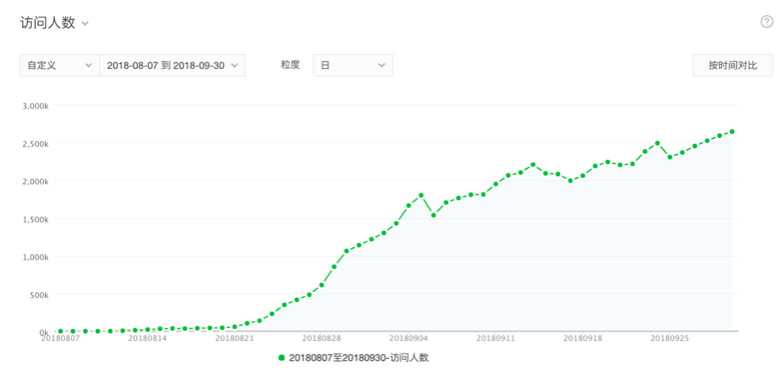 2018年8月7日-2018年9月30日 她face+每日訪問人數(shù)(DAU)
