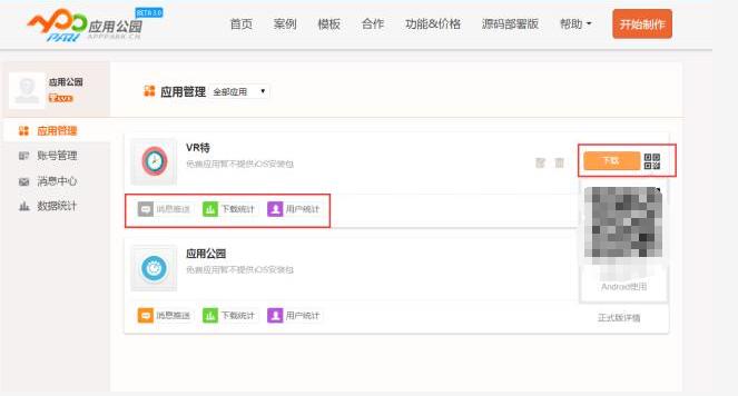 7、應(yīng)用公園有專門的后臺(tái),而且功能還支持安卓、蘋果雙系統(tǒng)APP一鍵自動(dòng)生成,還有手機(jī)運(yùn)營(yíng)助手,遠(yuǎn)程操作。