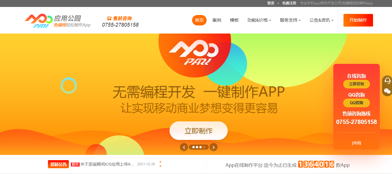 “應(yīng)用公園”app在線制作平臺是國內(nèi)靠前自助式DIY制作app平臺,主要面向不懂編程技術(shù)的小白,只要你花點時間熟悉后臺,就能快速上手制作一個可以和外包公司相媲美的手機app。平臺有上百個已經(jīng)提前開發(fā)好的app模板,還有常見APP功能,這些開好的功能模塊,可以自由組合使用,成本相比外包開發(fā)可節(jié)省90%以上。