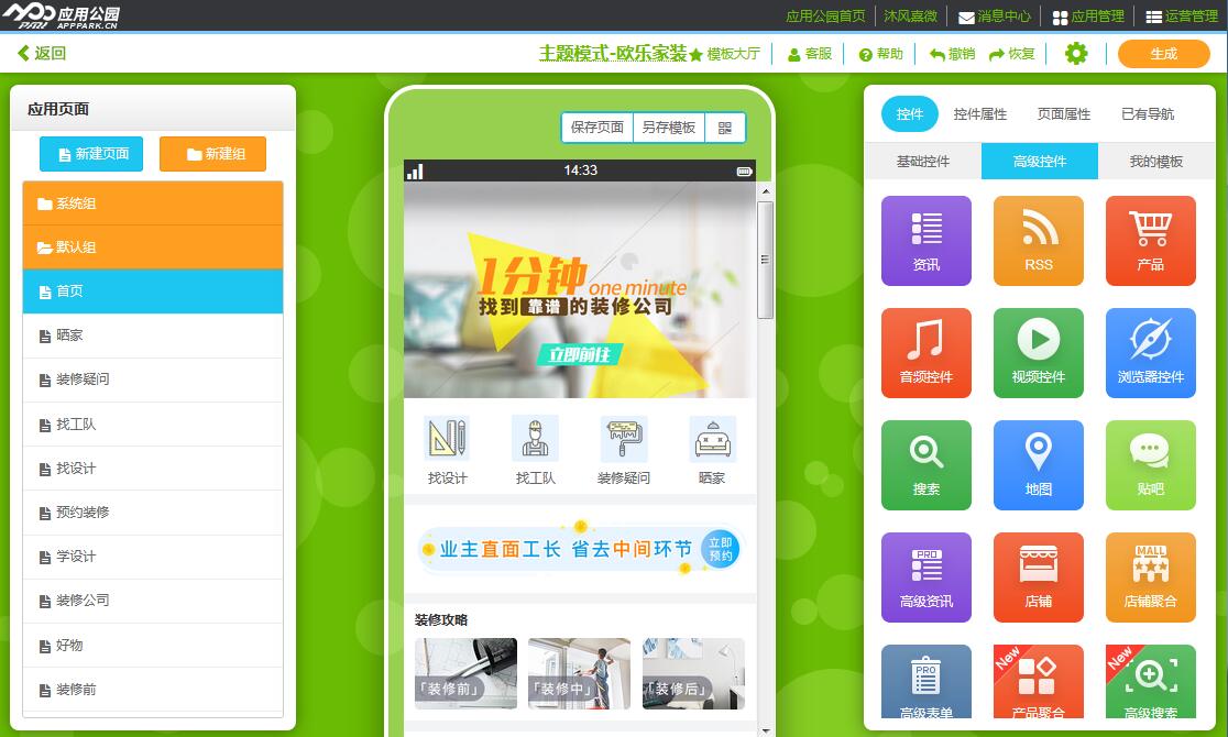 “歐樂家裝”,讓家裝公司擁有自己的移動(dòng)互聯(lián)網(wǎng)平臺(tái),快來(lái)應(yīng)用公園制作使用吧!