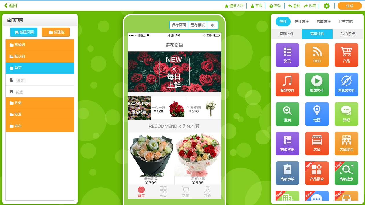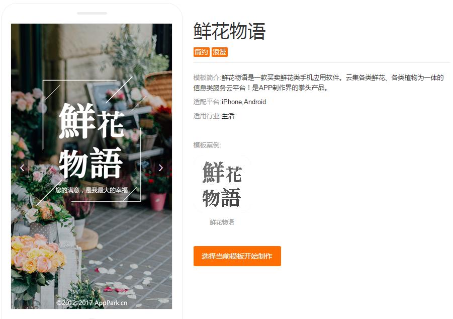 現(xiàn)在,不用重新開(kāi)發(fā),在應(yīng)用公園已經(jīng)有現(xiàn)成的鮮花預(yù)定APP模板——“鮮花物語(yǔ)”,可以直接使用。不用花費(fèi)數(shù)十萬(wàn),只需要把里面的圖片文字進(jìn)行替換即可。資金成本、時(shí)間成本可節(jié)約90%左右。