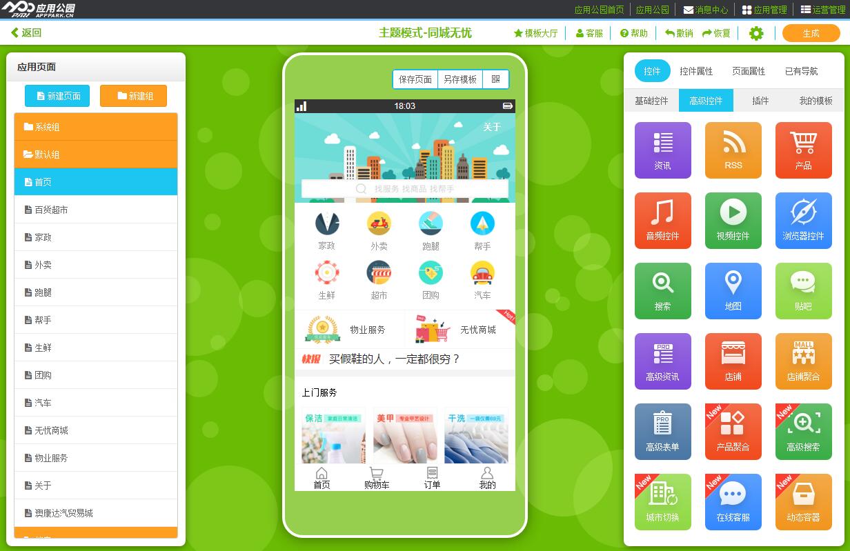 因為在應(yīng)用公園平臺,已經(jīng)有上百個類似注冊登錄、地圖定位、購物車、在線聊天、會員管理等等的APP功能控件,利用這些開發(fā)好的APP功能,完全不需要編程自己就可以做一個APP。
