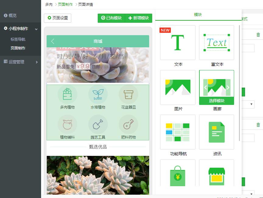通過微墨小程序制作平臺(tái),不需要任何的編程技術(shù),自己就能拼圖式搭建小程序了,而且微墨小程序平臺(tái)還有眾多開好商城小程序模板,可以一鍵套用,讓你10分鐘就能完成小程序的制作。
